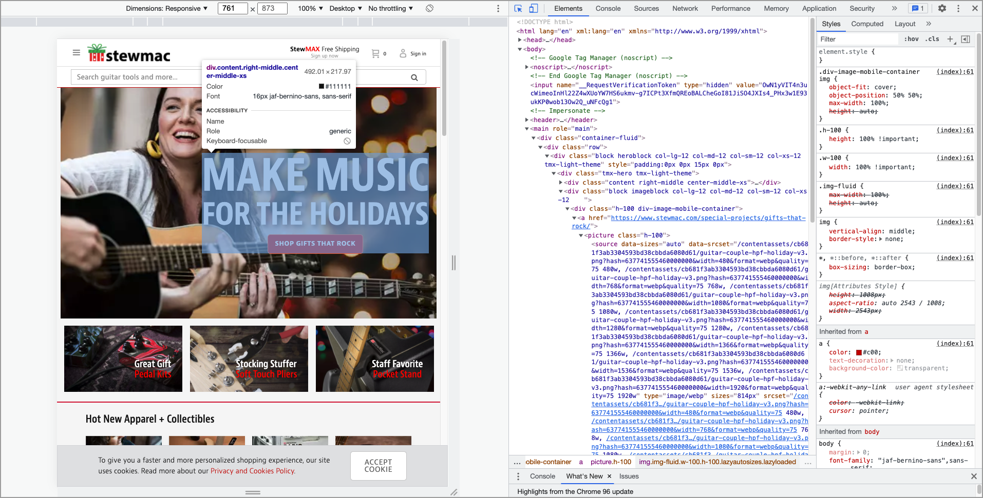 A manual code inspection was performed using the developer tools in Google Chrome (Version 86.0.4240.198).